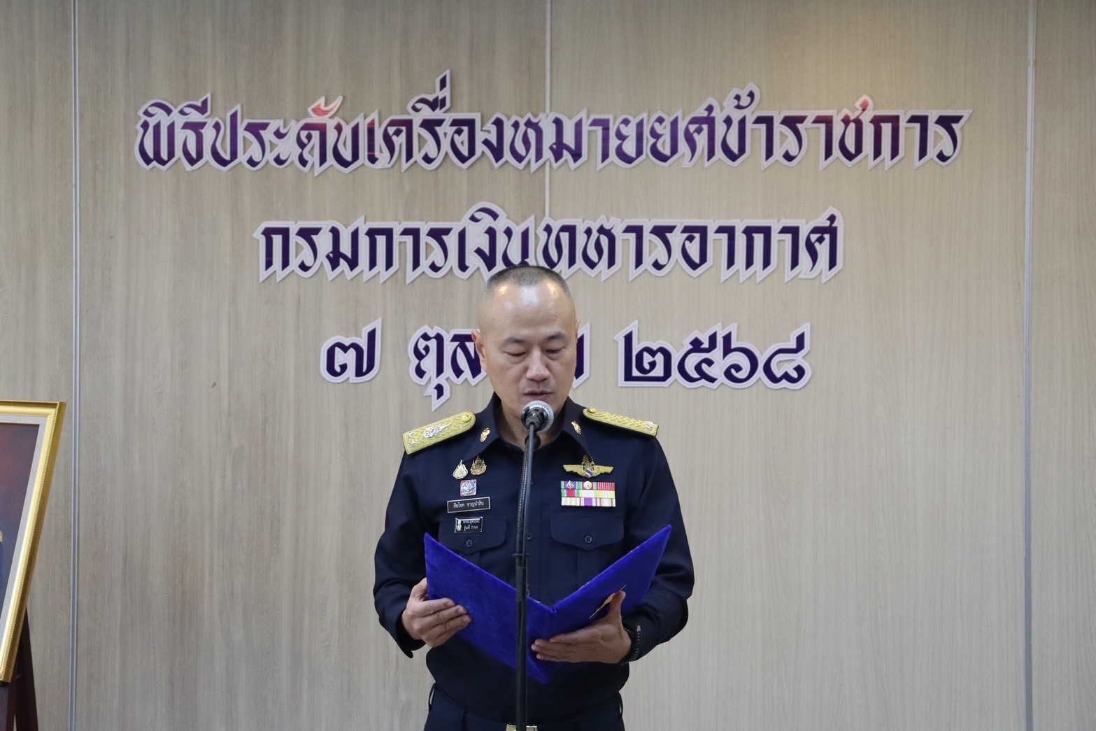 พลอากาศตรี สีฆโชค ชาญนำสิน เจ้ากรมการเงินทหารอากาศ เป็นประธานในพิธีประดับเครื่องหมายยศข้าราชการที่ได้รับการเลื่อนยศสูงขึ้น เมื่ออังคารที่ ๗ ตุลาคม ๒๕๖๘ ณ โรงเรียนเหล่าทหารการเงิน กองวิทยาการ กรมการเงินทหารอากาศ