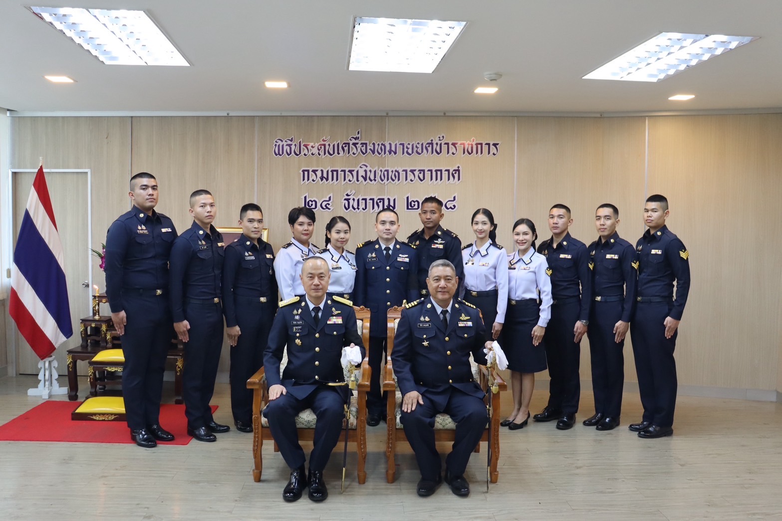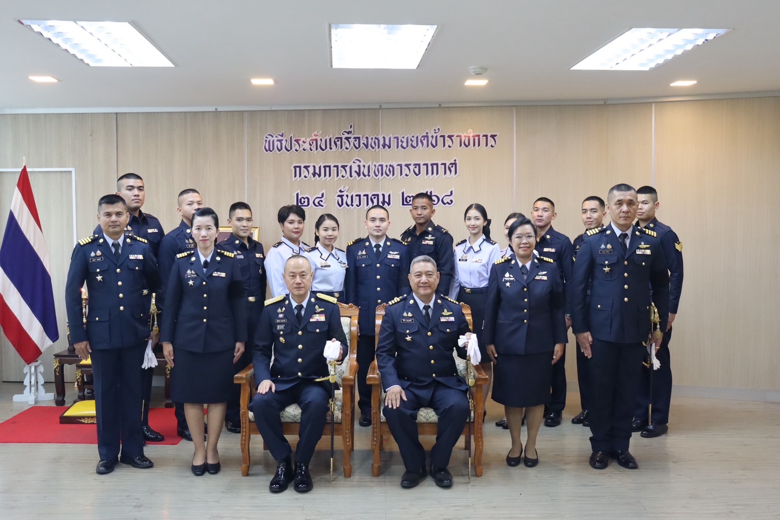 พลอากาศตรี สีฆโชค ชาญนำสิน เจ้ากรมการเงินทหารอากาศ เป็นประธานในพิธีประดับเครื่องหมายยศข้าราชการที่ได้รับการเลื่อนยศสูงขึ้น เมื่อพุธที่ ๒๔ ธันวาคม ๒๕๖๘ ณ โรงเรียนเหล่าทหารการเงิน กองวิทยาการ กรมการเงินทหารอากาศ