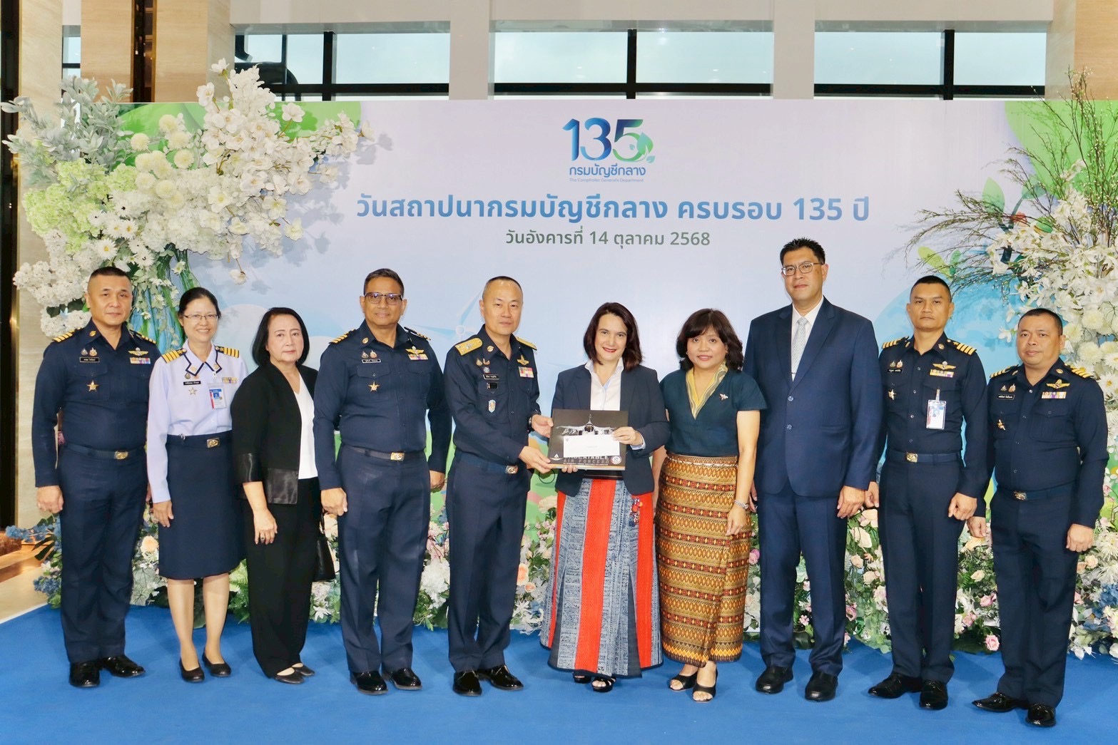 รองเจ้ากรมการเงินทหารอากาศ พร้อมคณะ ร่วมแสดงความยินดีกับกรมบัญชีกลาง เนื่องในโอกาสวันคล้ายวันสถาปนากรมบัญชีกลาง ครบรอบ ๑๓๕ ปี เมื่อวันอังคารที่ ๑๔ ตุลาคม ๒๕๖๘ ณ ห้องโถงกลาง ชั้น ๒๑ อาคาร ๑๕๐ ปี กระทรวงการคลัง