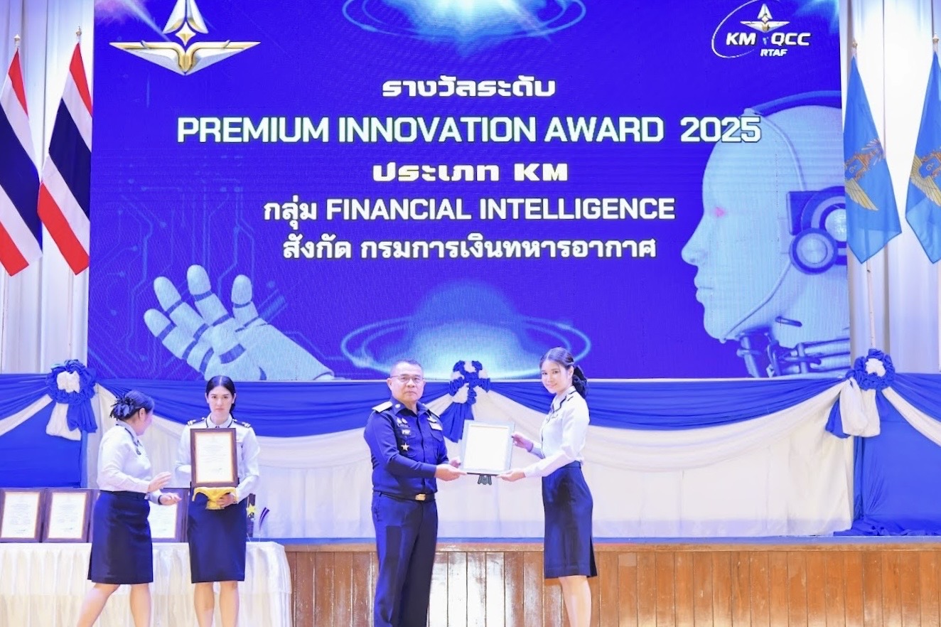 ด้านการเงินกองทัพอากาศ" รางวัลระดับ Premium Innovation Award เมื่อวันที่ ๔ กันยายน ๒๕๖๘ ณ หอประชุมกองทัพอากาศ (อาคารทองใหญ่)